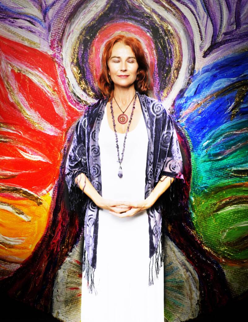 Do this ritual movement to stay in your center. Bring your intention into the circle: for example, "I create a circle of light and protection around me." Repeat this at your own pace, where sound and movement are one. The cosmic primordial sound envelops your essence. Rest in your Point of Pure Potential.