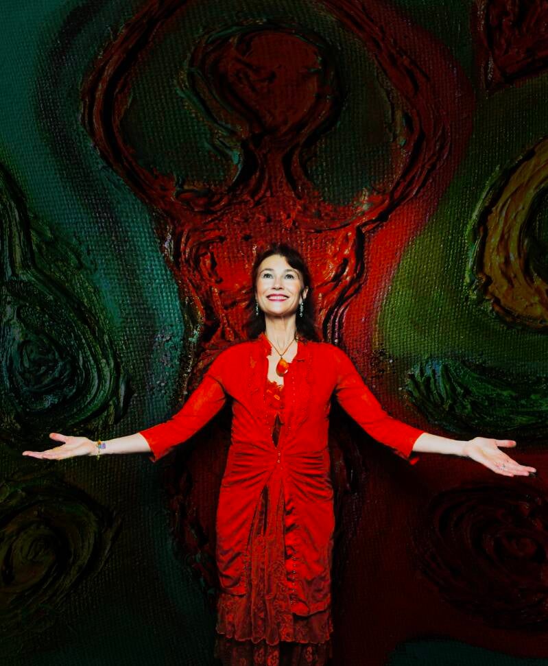 Experience yourself from a connection in the center of the space. From this feeling, take up all the space and radiate like the sun. As you slowly turn, you are present in your power. Repeat this movement until you perceive a change. What do you wish to open up within yourself? In what way do you wish to be seen? Breathe deeply into this space.