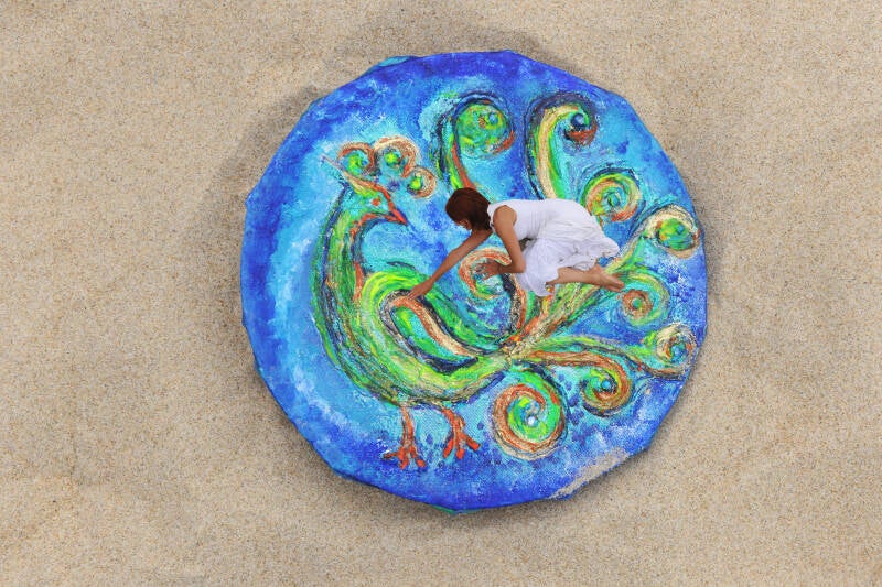 Meditation: Hold your hands like feathers above your head, as if you were a peacock spreading its feathers. Open them like a fan, revealing beauty.