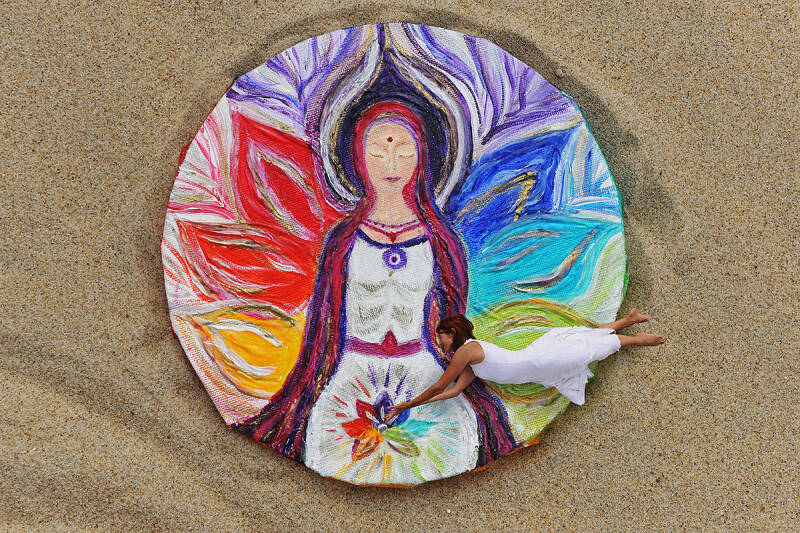 Doe deze rituele beweging om in je centrum te verblijven. Breng je intentie in de cirkel: bv. Ik creëer een cirkel van licht en bescherming rondom mij. Herhaal dit in je eigen ritme waarbij klank en beweging één zijn. De kosmische oerklank omhult jouw essentie. Rust in je Punt van Pure Potentie.