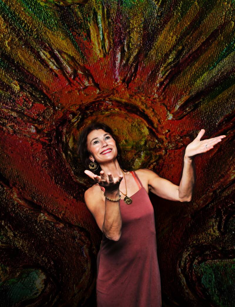 Create a vortex of energy around you. From bottom to top, top to bottom, inside to outside, and outside to inside. Do this with the Prana Mudra, the mudra of life force. Feel the rays of light around you and within you. You are the sun, the all-pervading force of vitality.