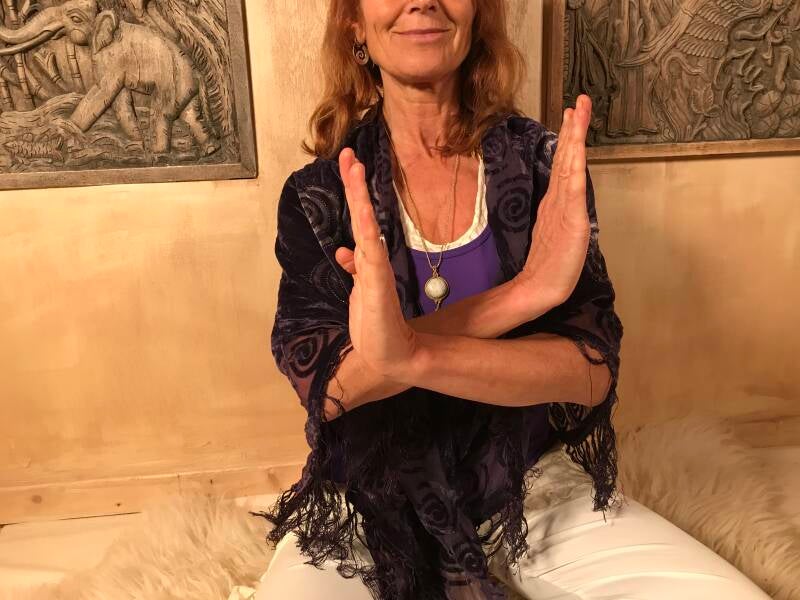 Le feu représente la protection et la purification. Les bras croisés devant votre cœur forment le mudra Swastika, qui signifie protection. Ensuite, vous connectez votre pouce et votre index, vous reliant ainsi à votre sagesse intérieure. Je m'ouvre aux bénédictions de la vie. Swastika donne quelque chose de noble et de puissant : votre bouclier pour lutter pour votre vérité et rester dans votre propre force.